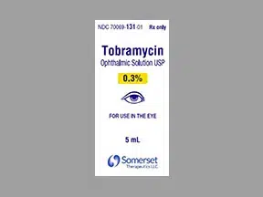 Description: Tobramycin comes in the form of a powder for injection. It is an aminoglycoside antibiotic prescribed for the treatment of bacterial eye infections. Tobramycin kills susceptible bacteria by blocking bacterial protein synthesis. You should not use Tobramycin if you are pregnant as it could harm the unborn baby. Common Tobramycin side effects may include fever, headache, rash, noisy breathing and an altered sense of taste.