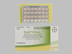 Indications: Safyral is a combination hormone drug used to prevent pregnancy. The generic version of Safryal is drospirenone/ethinyl estradiol/levomefolate. The average Safryal cash price for a pack (28 tablets) is about $258. You can make save up to 80 percent of off the Safryal retail price with our free LowerMyRx savings card. Sign up for our Safryal coupon card and receive an immediate discount at a participating local pharmacy.