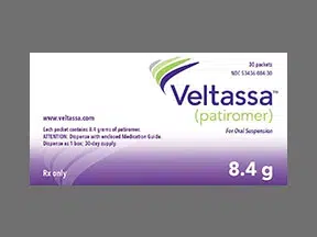 Description: Veltassa is prescribed for the treatment of patients with high potassium levels. Veltassa works by sticking itself to the potassium in your digestive tract. This helps to prevent your body from absorbing too much potassium.